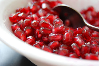 Junto a las peregrinas, usaremos las granadas, que también están en su mejor momento, comprendido éste entre mediado el Otoño y finales de Enero. Considerada en Oriente como la fruta símbolo del amor y la fecundidad, es un auténtico manjar de muy bajo nivel calórico, sabor áspero y un leve recuerdo a un vino afrutado de paladar refrescante debido a la presencia de taninos, como en el vino, en su composición. Realmente es un complemento de lujo en una ensalada y, desde aquí, me permito recomendar su uso en este tipo de platos.