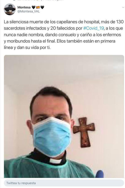 Sin duda los héroes de la crisis del coronavirus son los médicos, sanitarios y técnicos de los hospitales. A ellos van dirigidos los aplausos de las ocho de la tarde que empiezan a desaparecer en algunos edificios al considerarse una manipulación de ingeniería social por parte del Gobierno. En la prensa aparecen reseñas de fallecidos por coronavirus famosos como el marqués de Griñón Carlos Falcó, Lucía Bosé, Alfonso Cortina, Lorenzo Sanz, o escritores más o menos conocidos. Sin embargo, nadie se acuerda de los capellanes de hospital. Me acaban de enviar este mensaje sobre los silenciosos héroes de capa negra: “La silenciosa muerte de los capellanes de hospital, más de 130 sacerdotes infectados y 20 fallecidos con #Covid_19, a los que nadie nombra, dando consuelo y cariño a los enfermos y moribundos hasta el final. Ellos también están en primera línea y dan su vida por ti”.