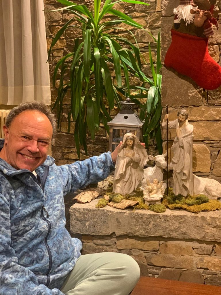 Alfredo Muñiz junto a un belén, símbolo de la Navidad y del nacimiento de Jesús.