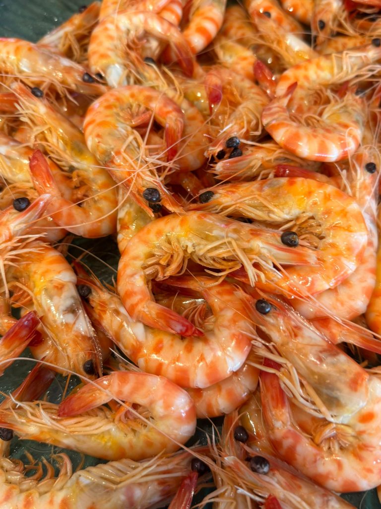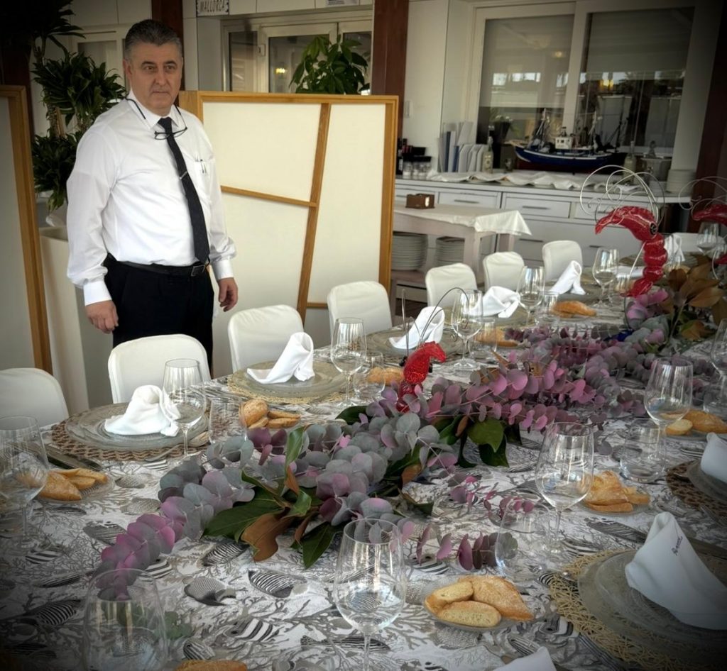 La mesa decorada con ramas de camelia, eucalipto y esculturas de crustáceos auguraban excelencia, y las expectativas no defraudaron. El inolvidable banquete comenzó con quisquillas tamaño XL; gambas del Mediterráneo; ensalada de tomate, aceitunas y bonito semicrudo; chirretes, y el tradicional arroz caldero del Mar Menor. Simplemente impresionante. De postre llegó el paparajote, relleno de hoja de limón, con helado.